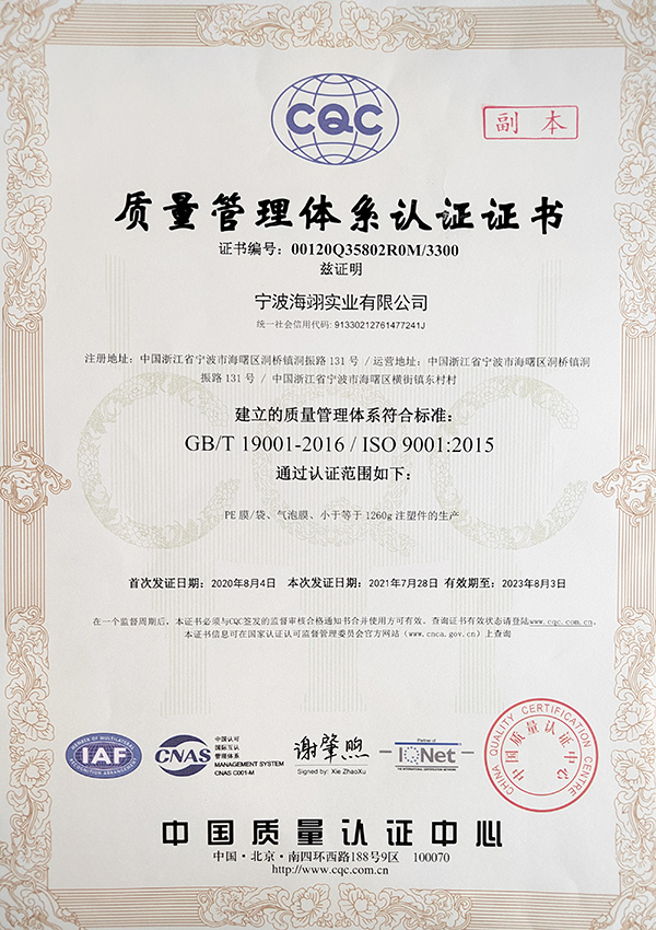 質量管理體系認證證書