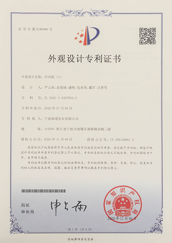 外觀設計專利證書