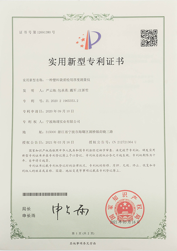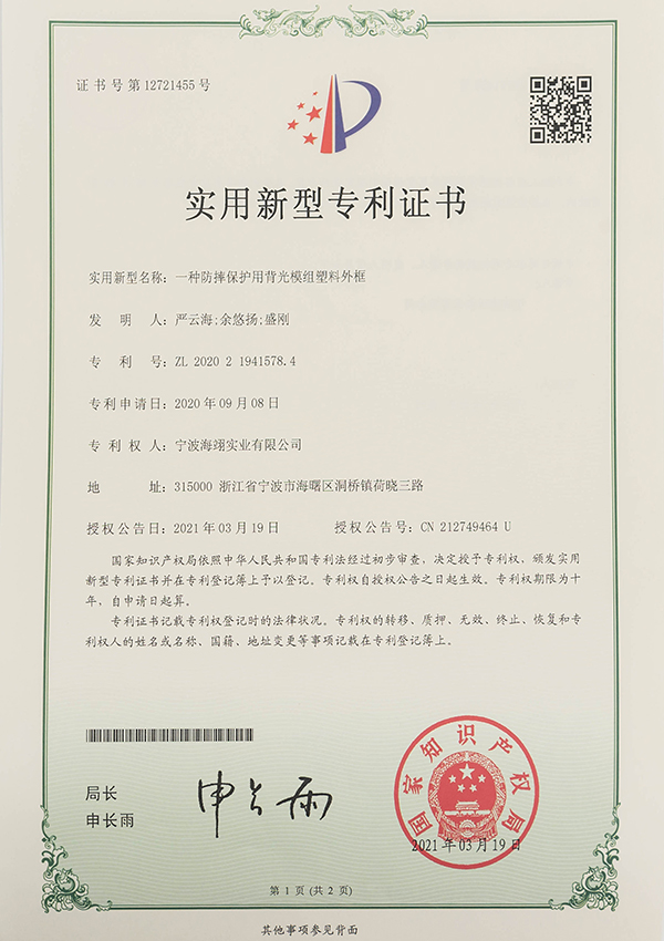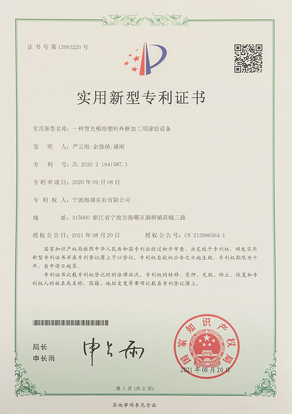 實用新型專利證書